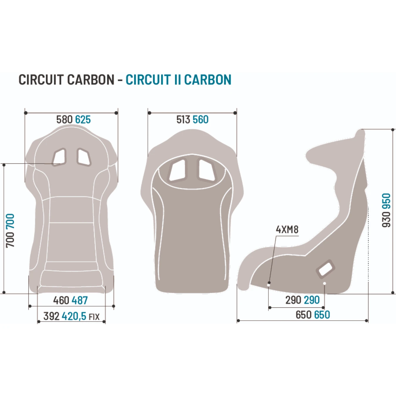 Fixations latérales entraxes 290mm.