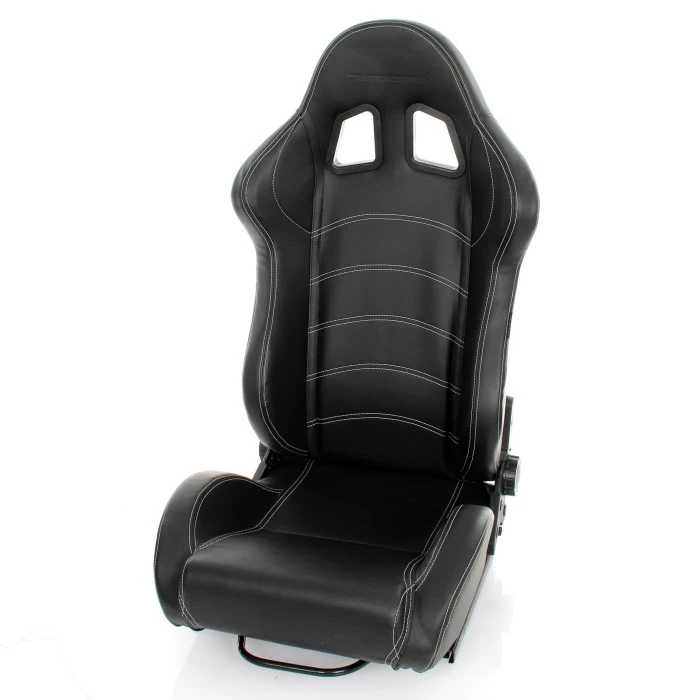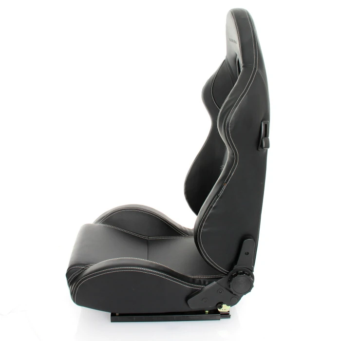 Siège baquet tubulaire rabattable en simili cuir, pouvant être utilisé aussi bien avec des harnais 3 ou 4 points qu’avec une ceinture d’origine.
