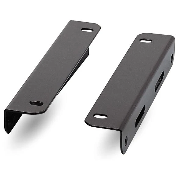 Paire de supports en «L» en acier pour le montage d’un baquet à fixations inférieures sur des fixations latérales.