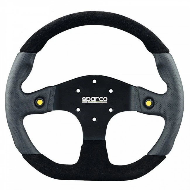 Ce volant plat au design sportif reprend tous les codes de la marque SPARCO.