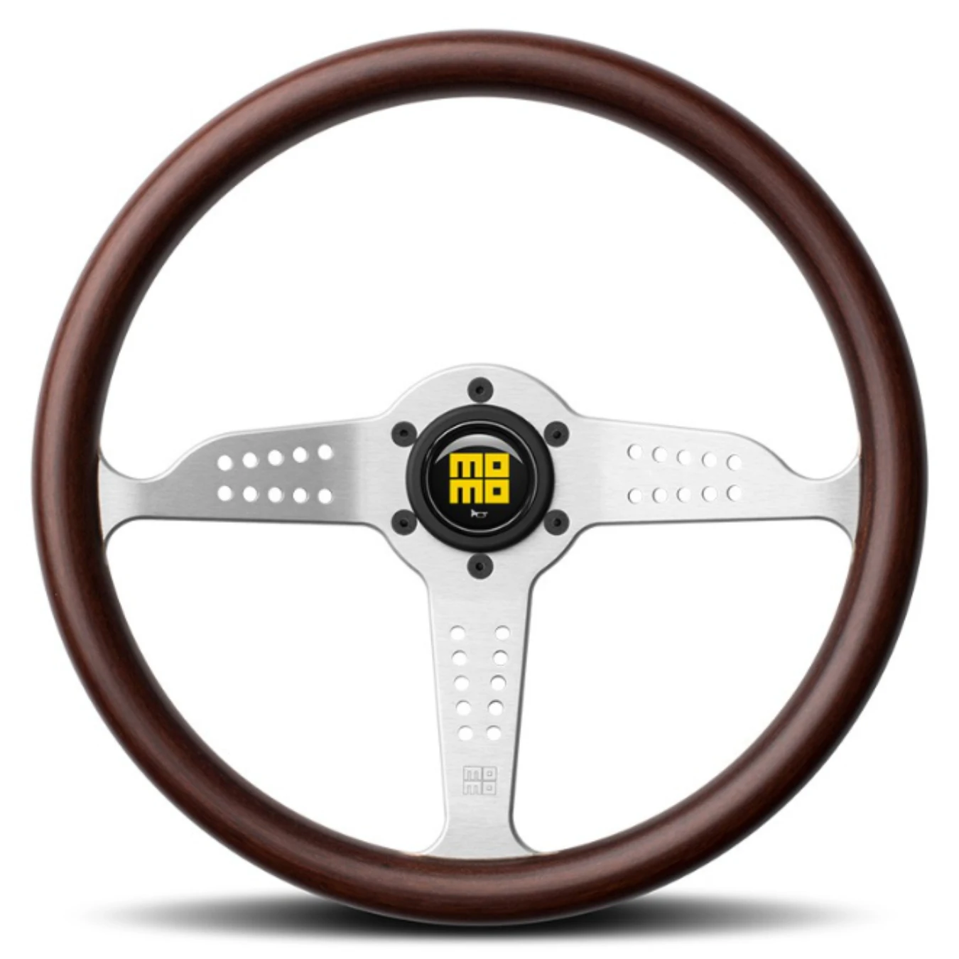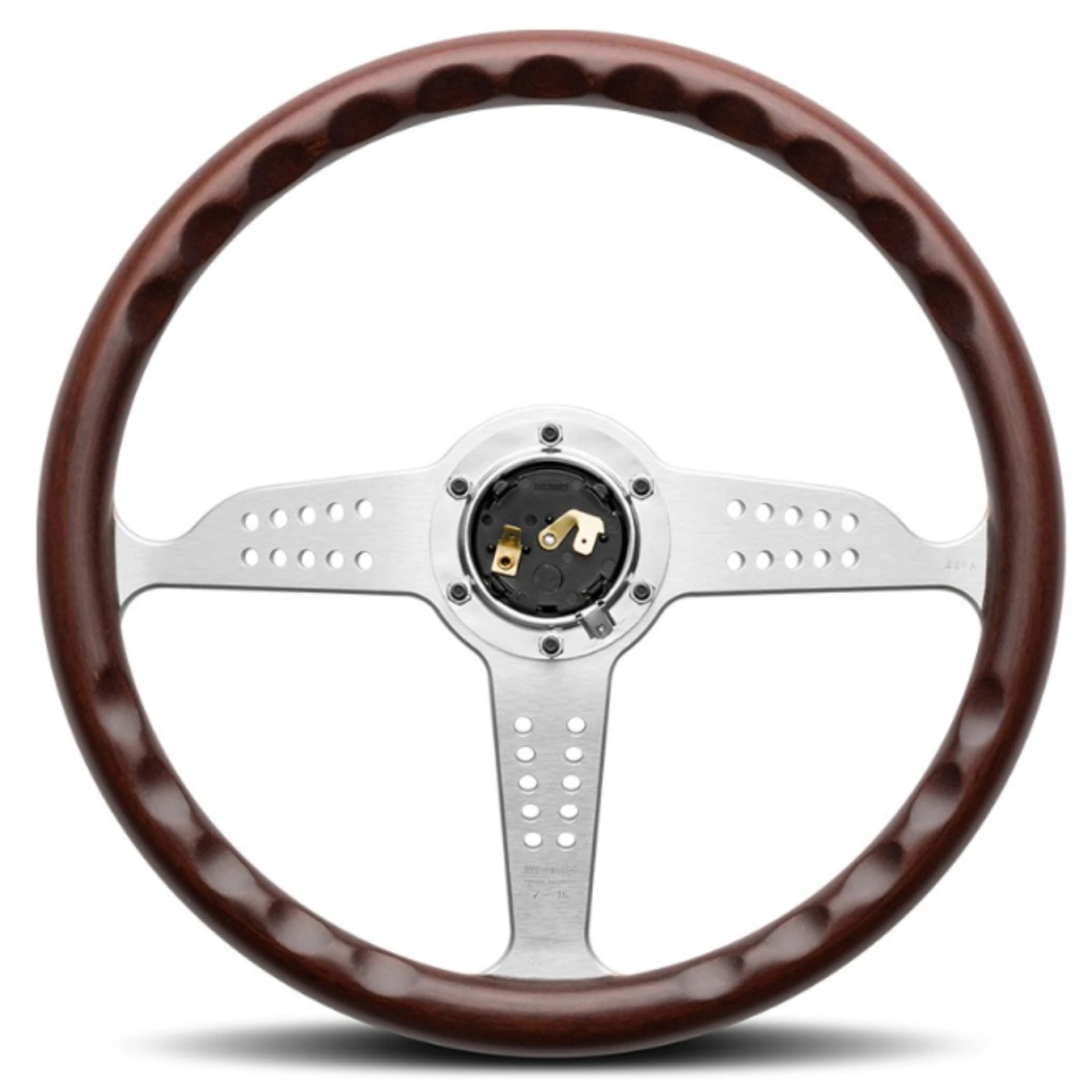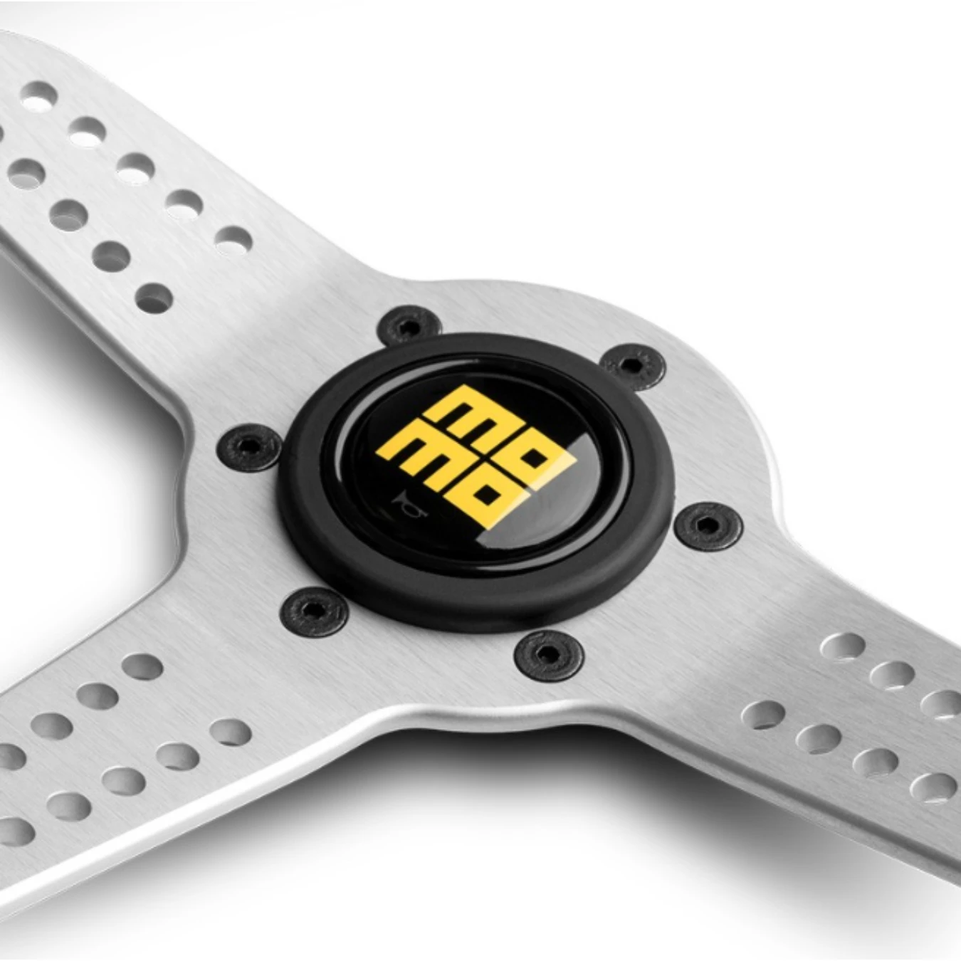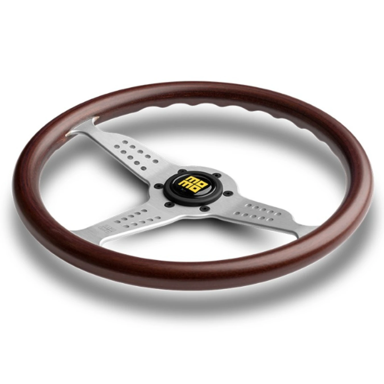 Détails de finitions spécifiques : Prise ergonomique, logo MOMO Héritage, branche en argent