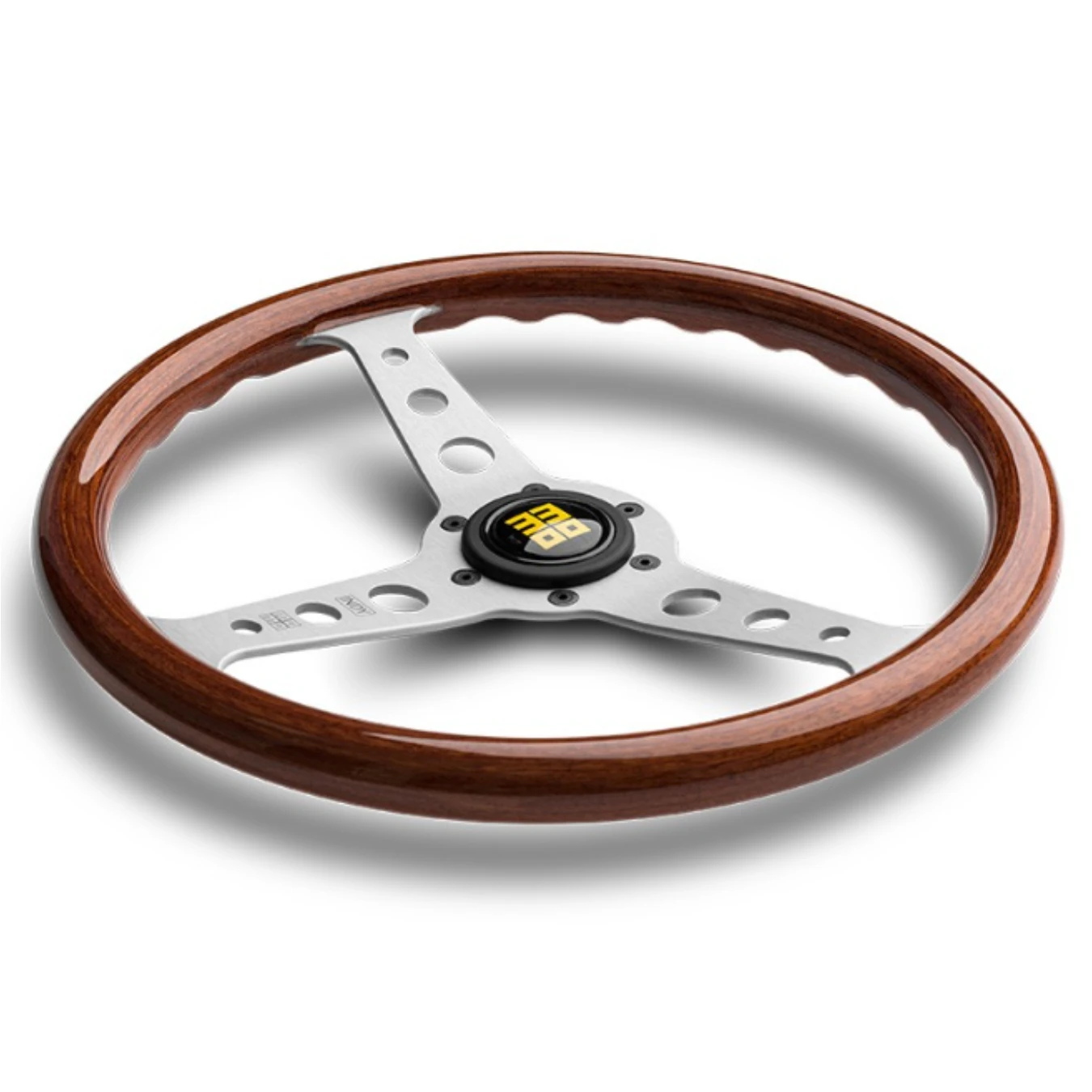 Détails de finitions spécifiques : Prise ergonomique, logo MOMO Héritage, branche en argent